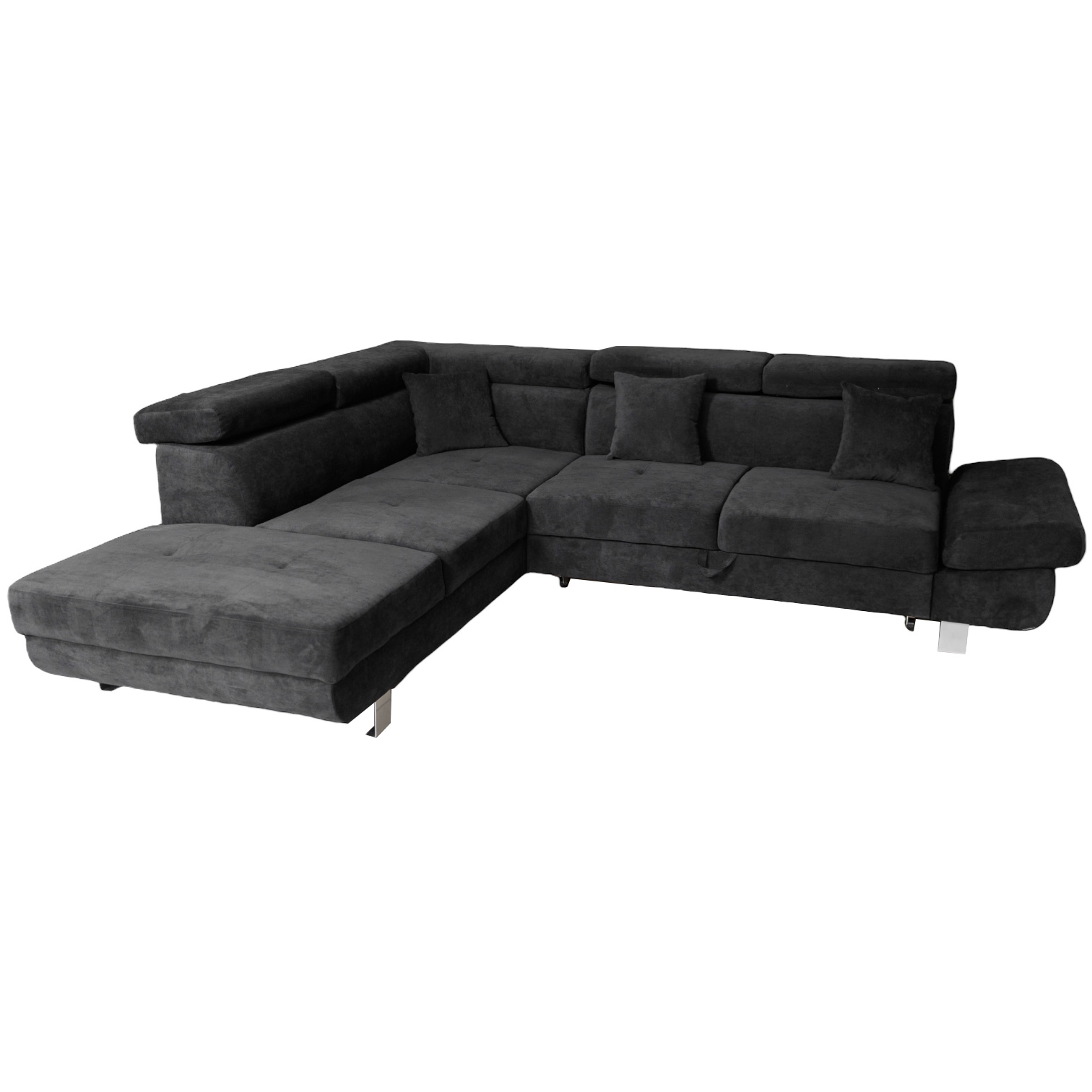 Colțarul extensibil Fink tapițat cu stofă catifelată neagră este o alegere elegantă și sofisticată pentru orice spațiu. Iată câteva detalii importante:Design rafinat: Culoarea neagră din stofă catifelată oferă un aspect luxos și modern, fiind ușor de integrat în diverse stiluri de decor.Funcționalitate extensibilă: Colțarul se poate transforma rapid într-un pat, ideal pentru a primi oaspeți sau pentru a oferi un loc suplimentar de odihnă.Tetiere reglabile: Tetierele reglabile asigură un suport personalizat pentru gât și cap, sporind confortul în timpul relaxării.Confort optim: Pernele sunt proiectate pentru a oferi un suport plăcut, perfect pentru momentele de relaxare.Materiale de calitate: Stofa catifelată este nu doar estetică, ci și plăcută la atingere, asigurând o utilizare confortabilă.Colțarul Fink este ideal pentru a adăuga atât stil, cât și confort în living sau în orice altă cameră!