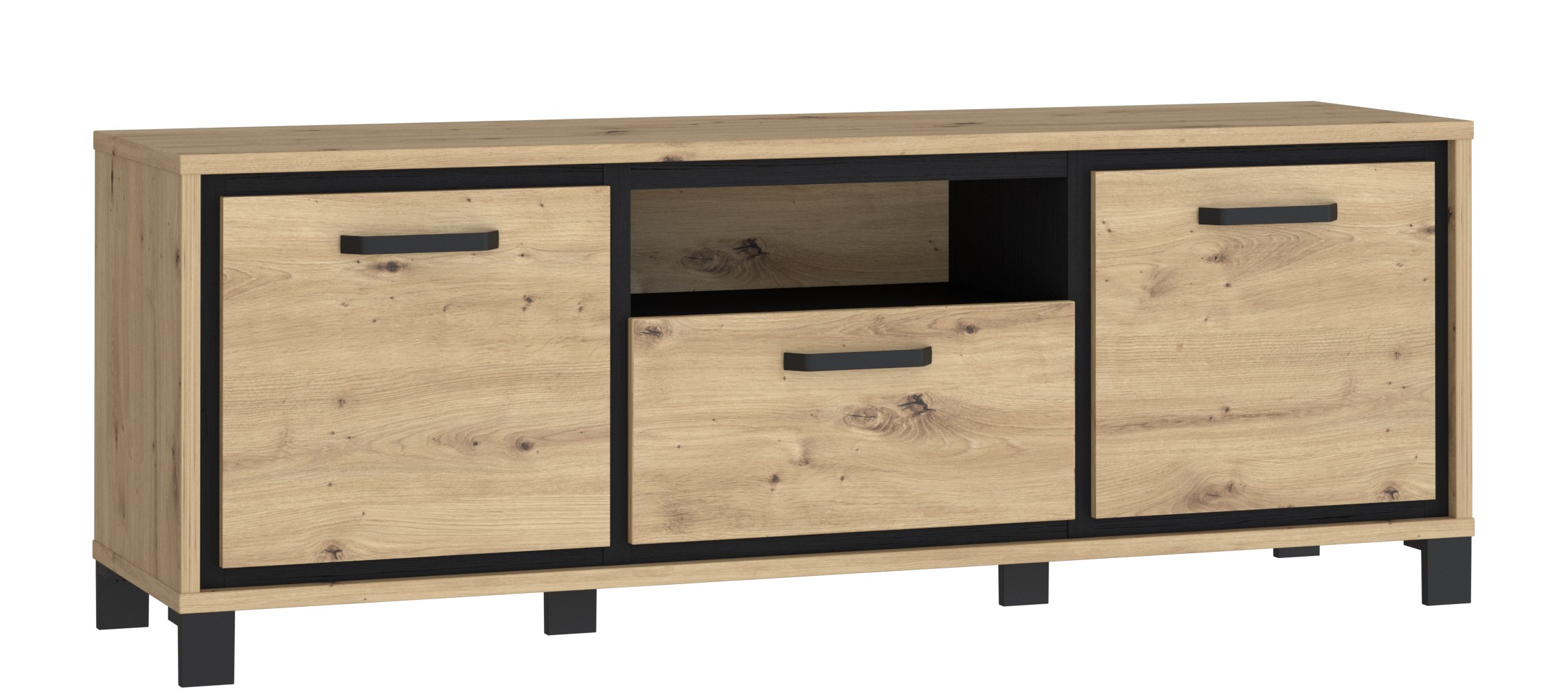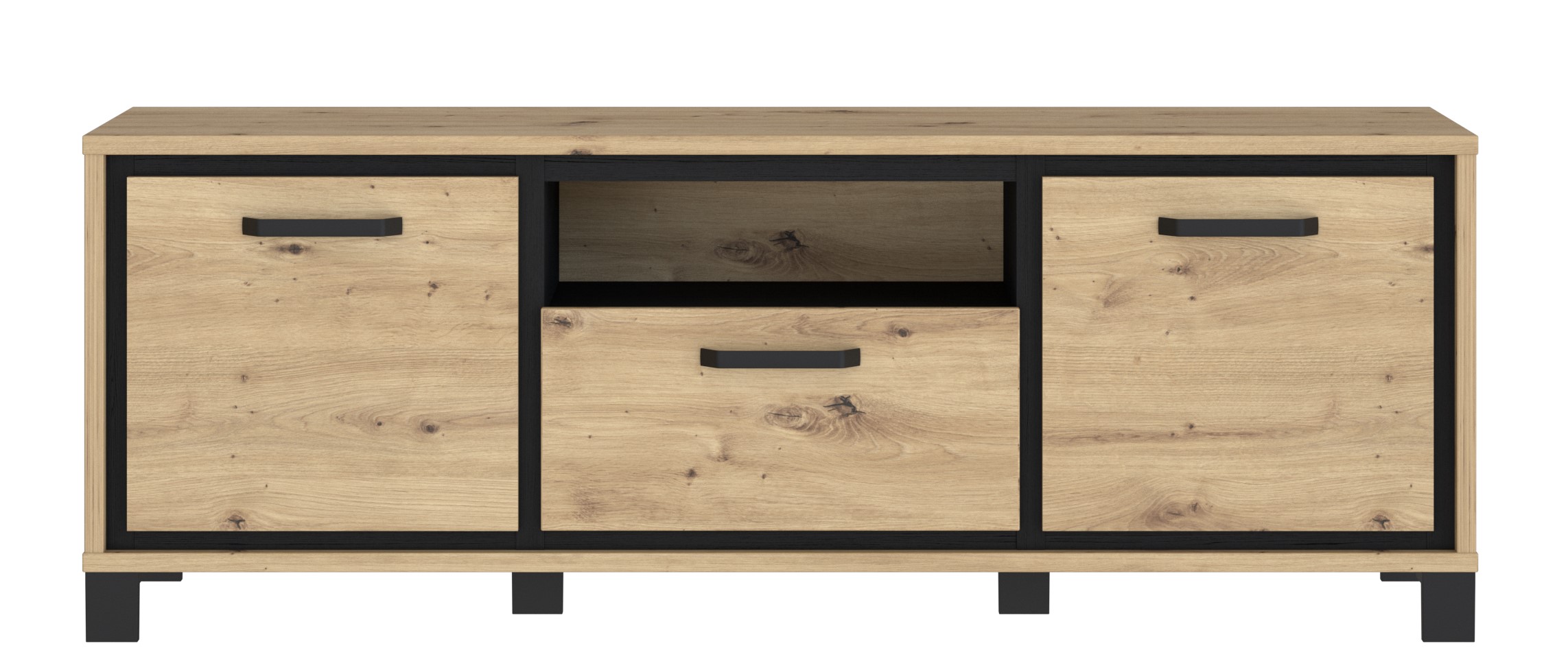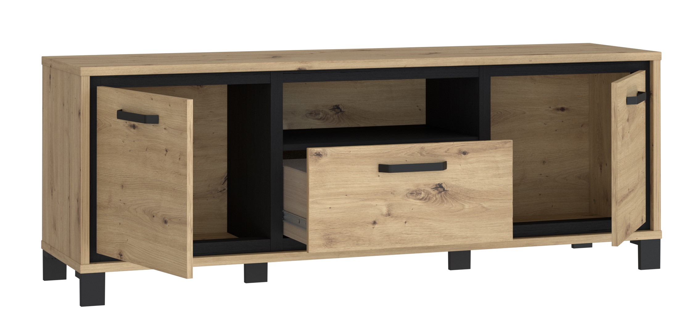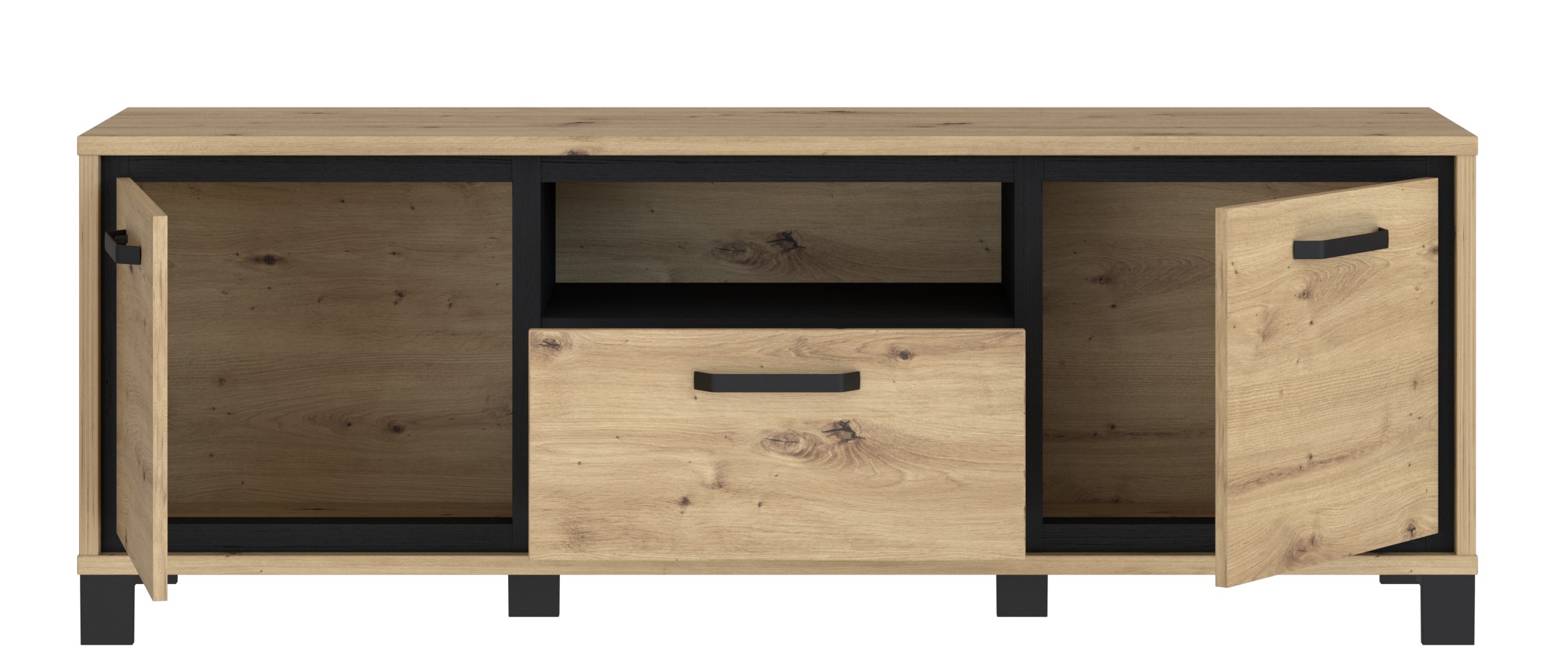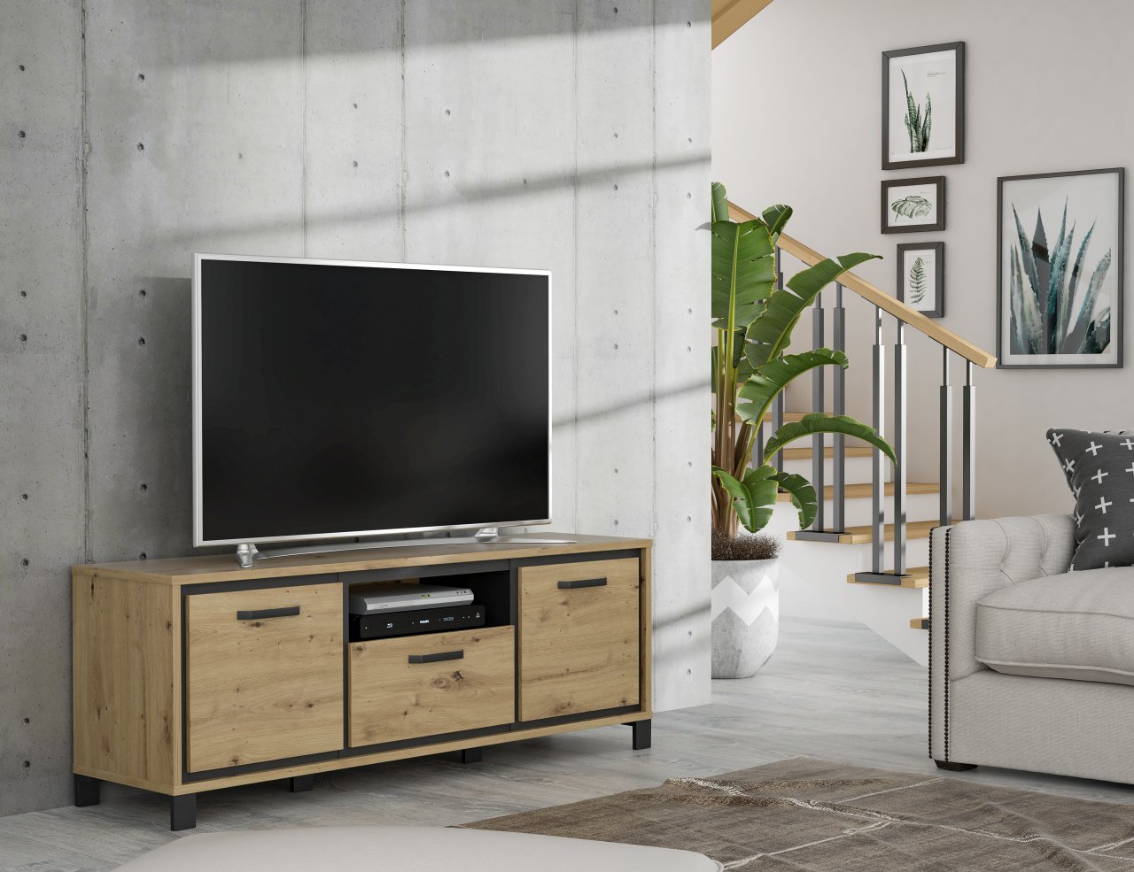 Acestă comodă TV este concepută pentru a oferi suport pentru televizor, având în același timp spații de depozitare ample.Designul său se integrează ușor în diverse stiluri de decor, făcând o alegere practică și estetică.