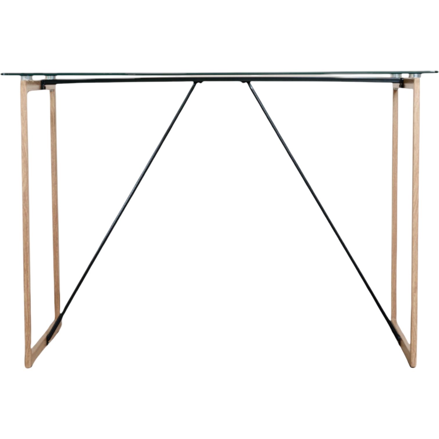 Masa compactă impresionează prin designul său contemporan, combinând materiale variate. Blatul este realizat din sticlă securizată, care oferă durabilitate și siguranță. Sticla este rezistentă la zgârieturi și șocuri, fiind ideală pentru utilizare zilnică. În plus, transparența sticlei adaugă o senzație de spațiu și lumină în încăpere. Piciorul mesei este fabricat din metal de înaltă calitate, asigurând stabilitate și durabilitate.