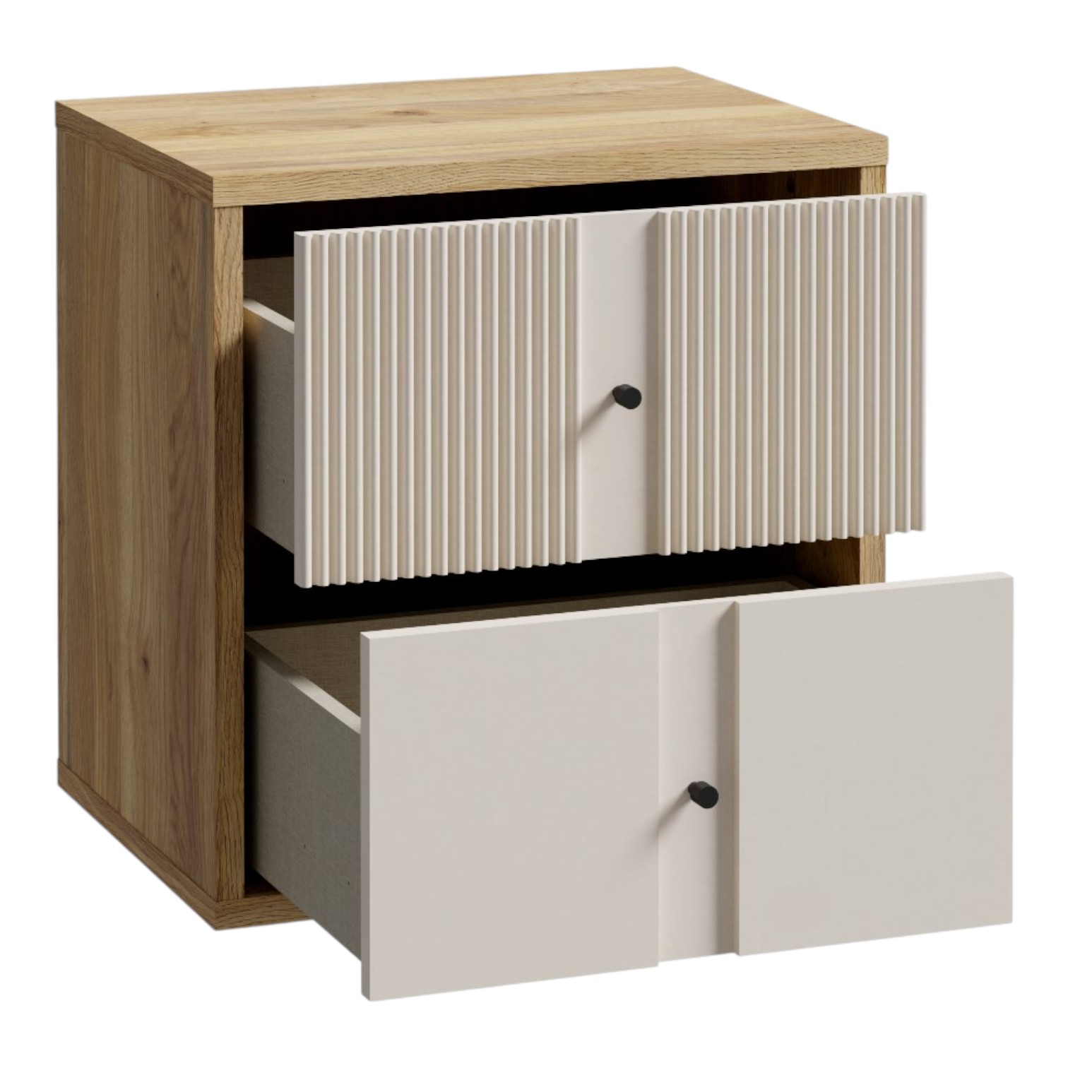 Noptiera Rankin, cu două sertare și linii bine definite, de culoare natur, este o piesă de mobilier elegantă și modernă, perfectă pentru dormitor. Designul său minimalist, accentuat de nuanța naturală, aduce un aer cald și primitor în încăpere. Cele două sertare oferă un spațiu generos pentru organizarea obiectelor personale, menținându-le la îndemână. Această noptieră se integrează ușor în diverse stiluri de decor, fiind ideală pentru a adăuga un accent contemporan.