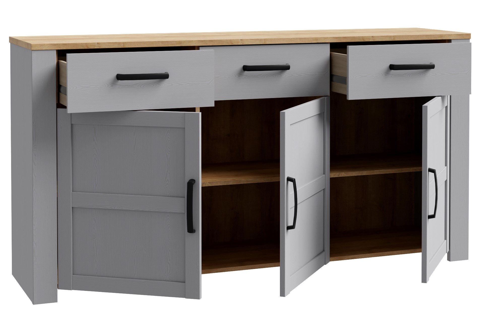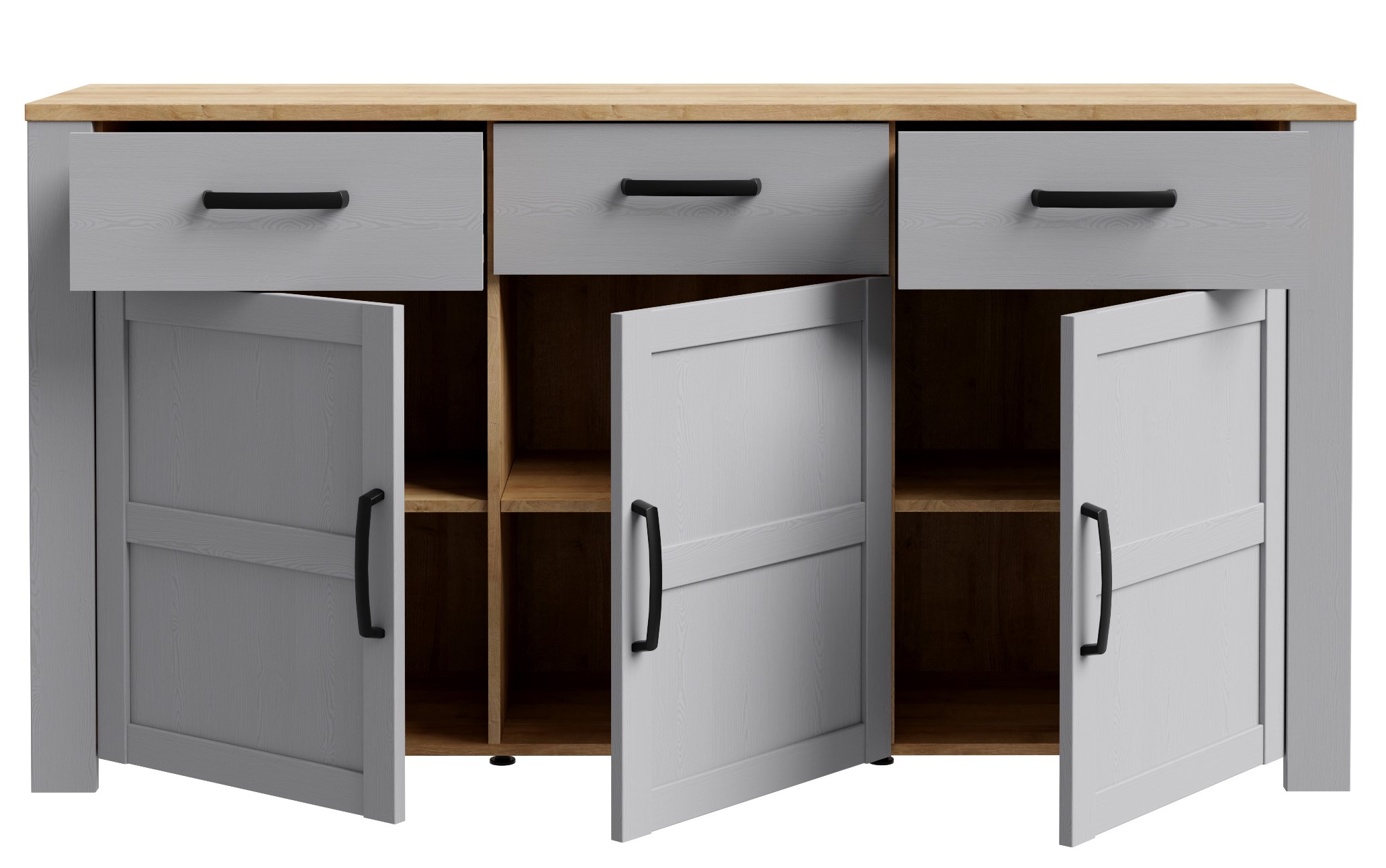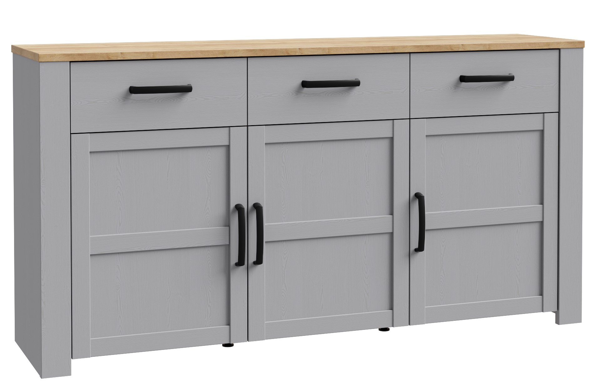 Трехдверный комод с тремя ящиками Bohol Grey, изготовленный из ДСП и МДФ, является отличным выбором для комнаты, сочетая стиль и функциональность. Просторный комод обеспечит эффективное хранение вещей.
