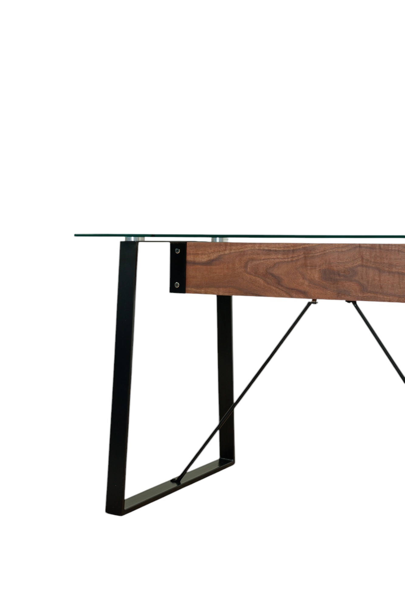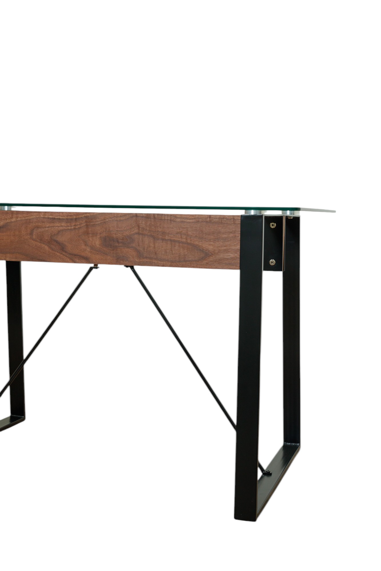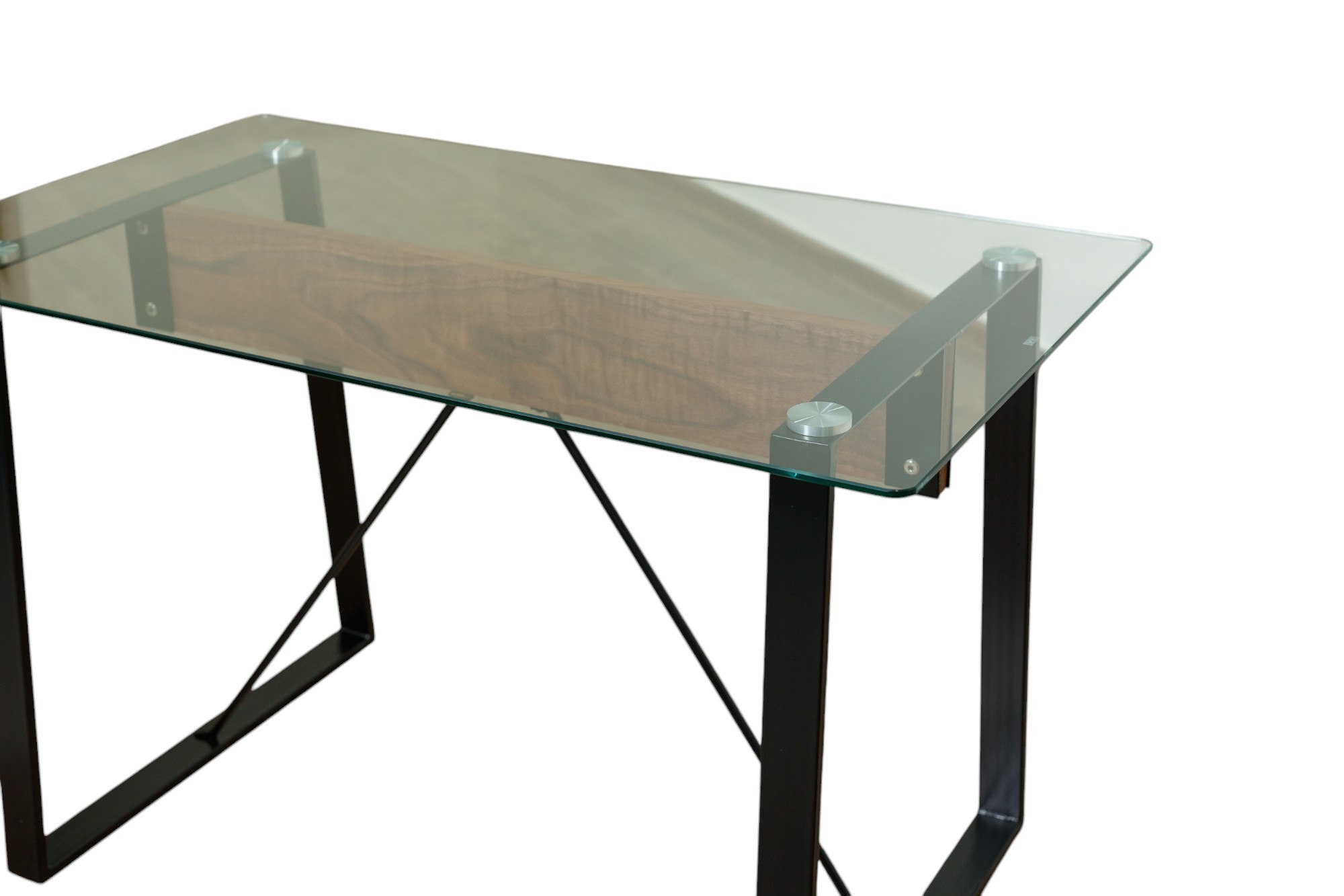 Компактный стол впечатляет своим современным дизайном, сочетающим в себе различные материалы. Столешница изготовлена из закаленного стекла, что обеспечивает долговечность и безопасность. Стекло устойчиво к царапинам и ударам, что делает его идеальным для ежедневного использования. Кроме того, прозрачность стекла добавляет помещению ощущение простора и света. Ножка стола изготовлена из высококачественного металла, что обеспечивает устойчивость и долговечность.
