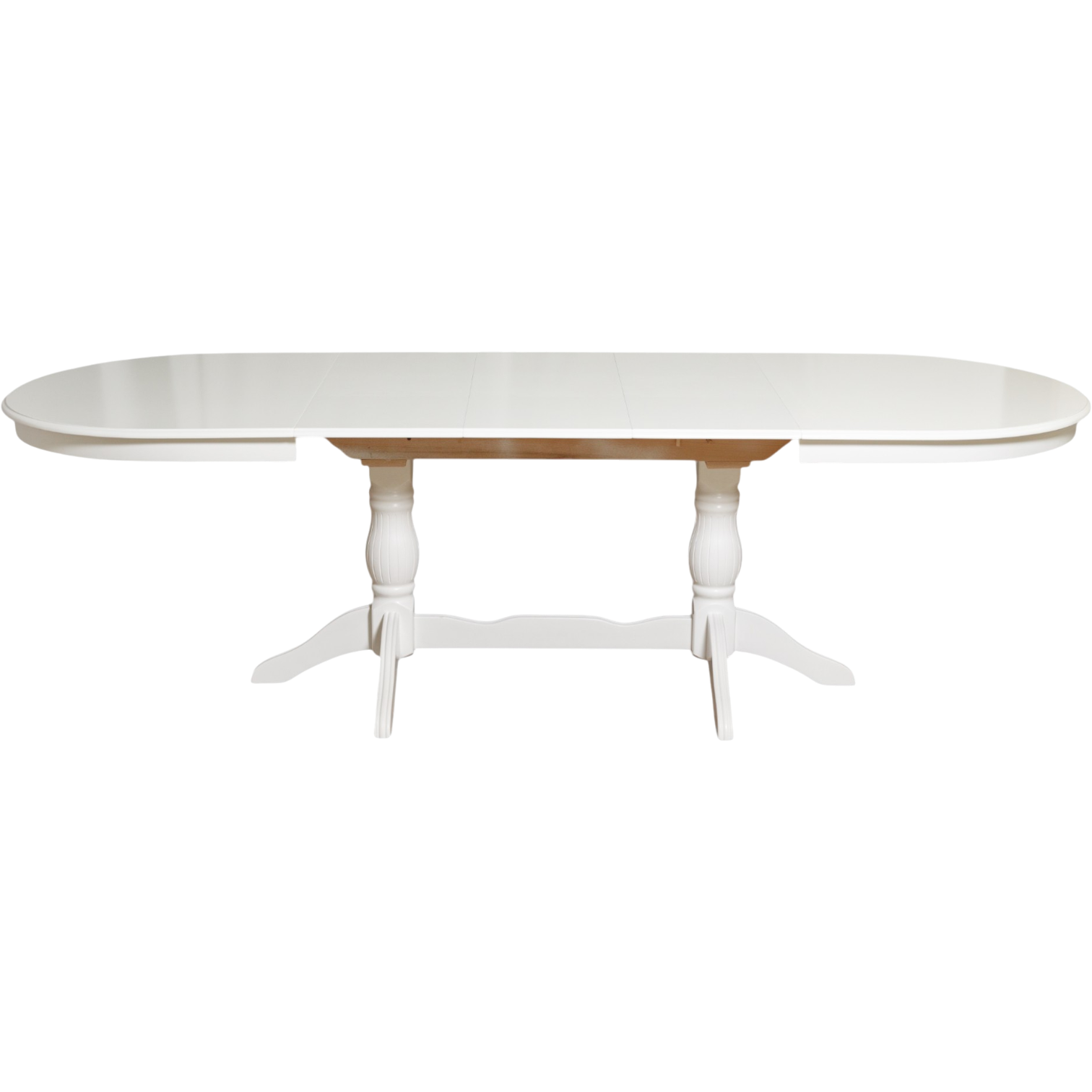 Белый раздвижной стол Europa Lux с ножкой из бука и столешницей из шпона МДФ — это элегантный предмет мебели, идеально подходящий для гостиной или столовой, сочетающий в себе современную эстетику и функциональность. Кремовый финиш придает яркий и теплый вид, привнося атмосферу изысканности и комфорта. Этот нейтральный оттенок прекрасно сочетается с различными стилями декора, подходя как для классических, так и для современных интерьеров.