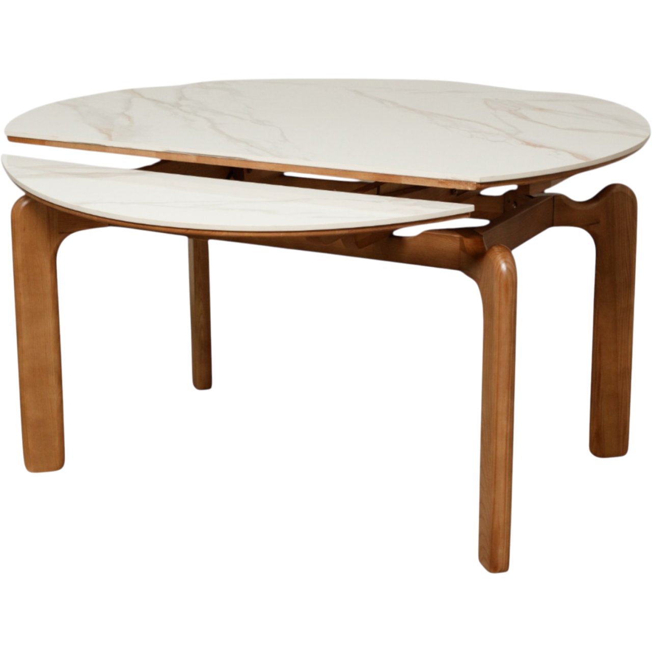 Стол Bergen — это сочетание функциональности и элегантности. Керамическая столешница с основой из МДФ придаёт современный вид и прочность, а деревянная ножка обеспечивает надёжность и уют. Стол раскладывается: из овального превращается в круглый, что делает его идеальным для семейных ужинов и приёмов гостей.