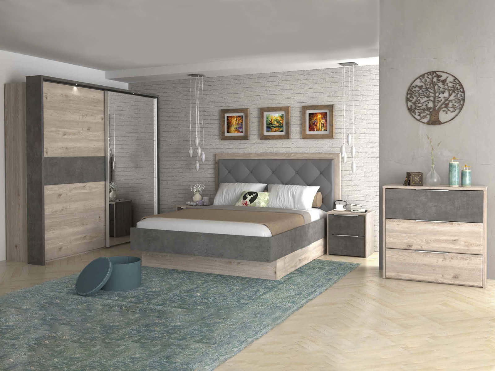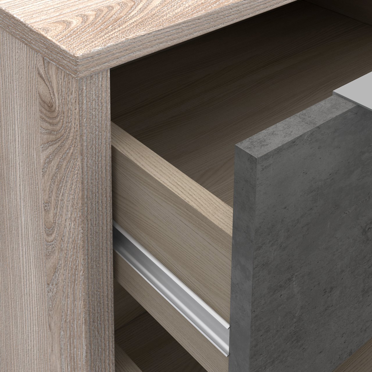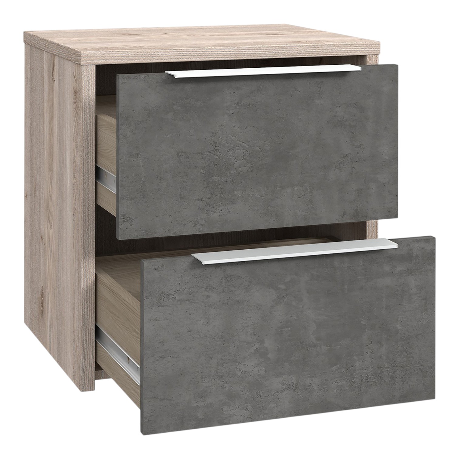 Тумбочка Esporao Conforama с двумя ящиками натурального цвета в сочетании с бетоном, идеальный современный предмет для современной спальни. В его дизайне теплые тона дерева сочетаются с индустриальным видом бетона, создавая привлекательный контраст. Два ящика предлагают достаточно места для хранения личных вещей и идеально подходят для хранения книг, часов и других аксессуаров под рукой. Прикроватная тумбочка Esporao Conforam идеально вписывается в различные стили декора, привнося свежий и инновационный вид.