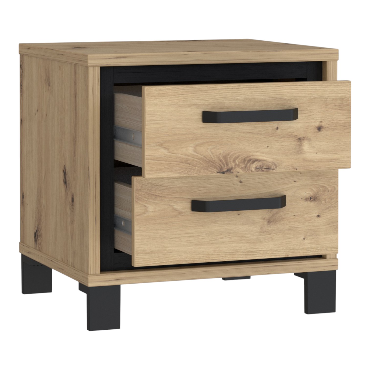 Прикроватная тумбочка Trondheim натурального цвета с элегантными черными элементами — изысканный выбор для любой спальни. Ее дизайн сочетает в себе функциональную эффективность с приятным эстетическим внешним видом, обеспечивая место для хранения личных вещей. Ее можно сочетать с различными стилями мебели, от минимализма до индустриального.