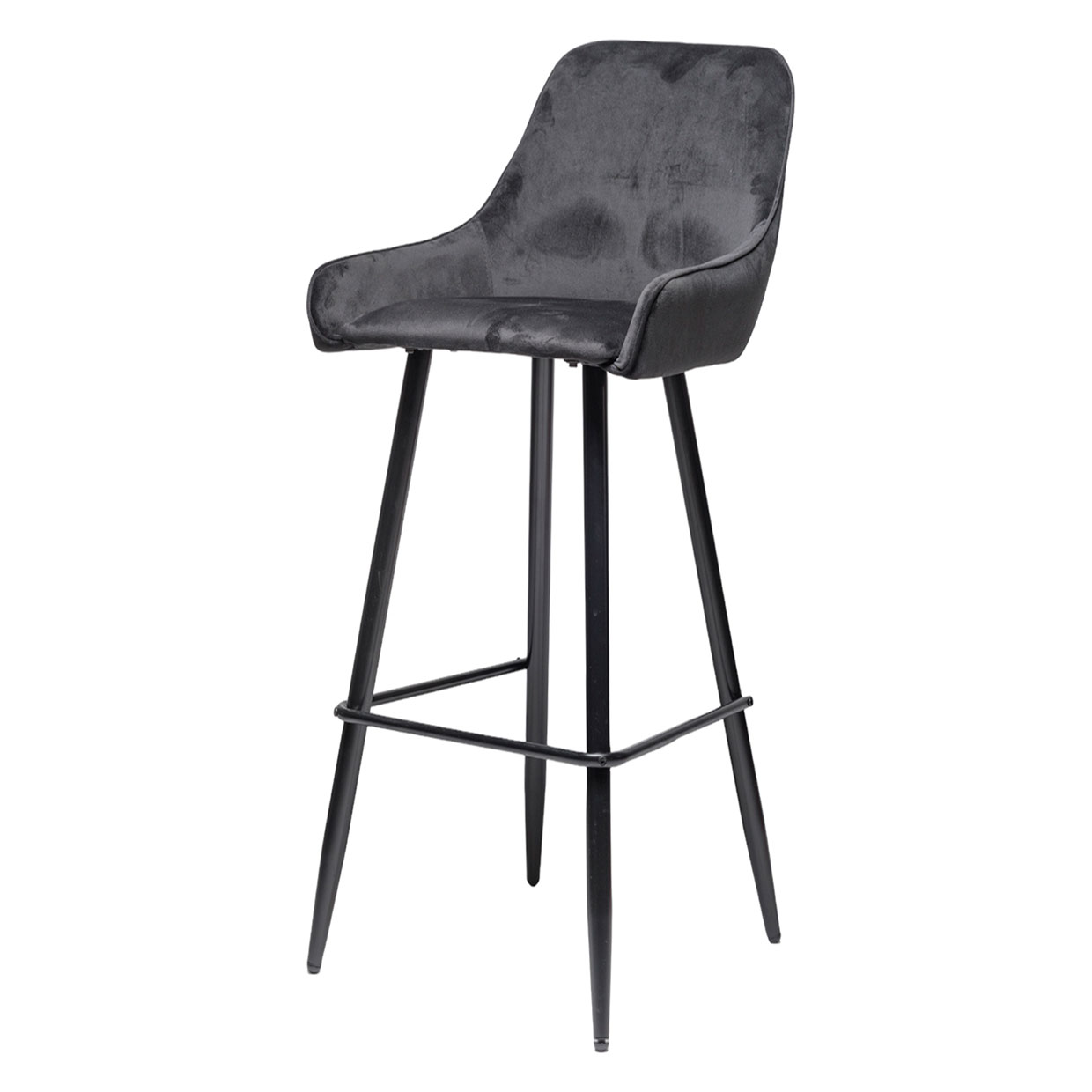Барный стул с металлическим корпусом и ножкой, обитый тканью, представляет собой элегантный и практичный предмет мебели, идеально подходящий для современной обстановки. Cтул сочетает в себе долговечность металла с комфортом обивки, создавая комфортное и изысканное сидение.