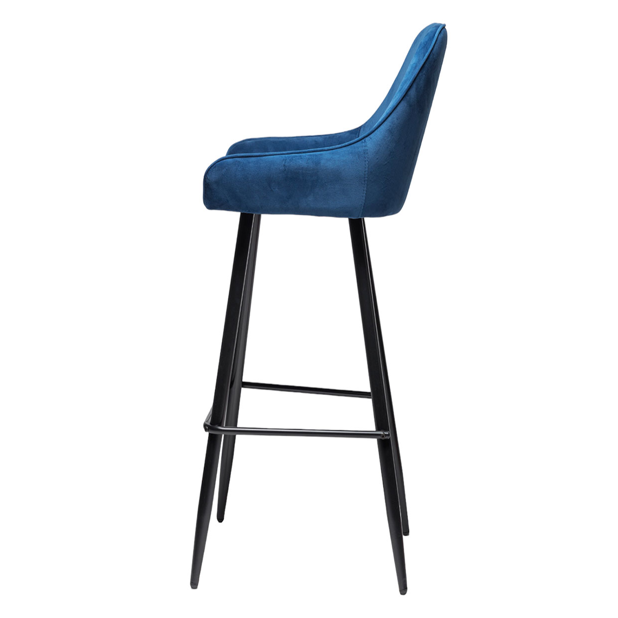 Барный стул с металлическим корпусом и ножкой, обитый тканью, представляет собой элегантный и практичный предмет мебели, идеально подходящий для современной обстановки. Cтул сочетает в себе долговечность металла с комфортом обивки, создавая комфортное и изысканное сидение.